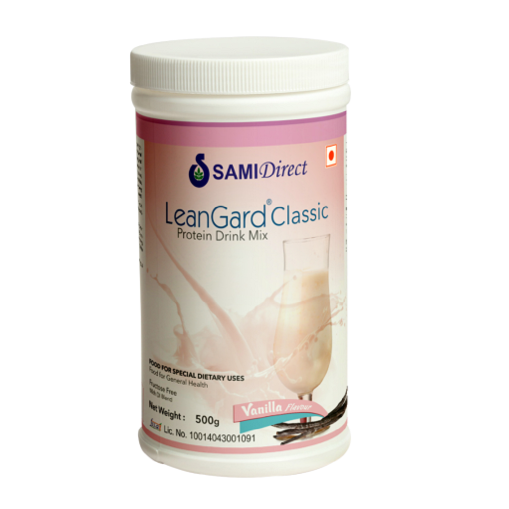 LeanGard®Classic protein drink mix is a perfect combination of high quality Soy protein isolate, Soy Fibres and Whey protein fortified with essential daily required vitamins, minerals along with antioxidants and dietary fibres. It provides an ideal balance of protein and nutrition without overloading unnecessary fat and calories. It is a synergistic weight management formula with No added Fructose.
